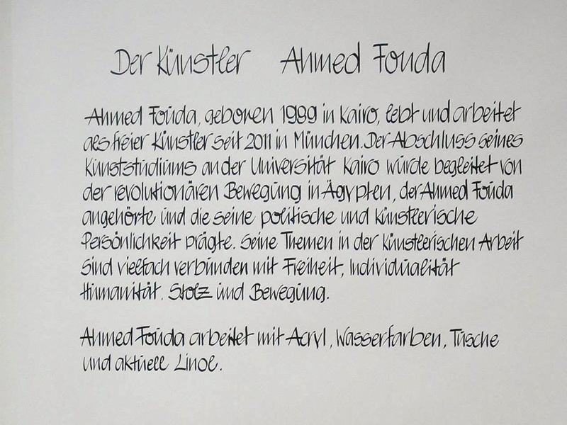 Ahmed Fouda, geboren 1989 in Kairo, lebt und arbeitet als freier Künstler seit 2011 in München.