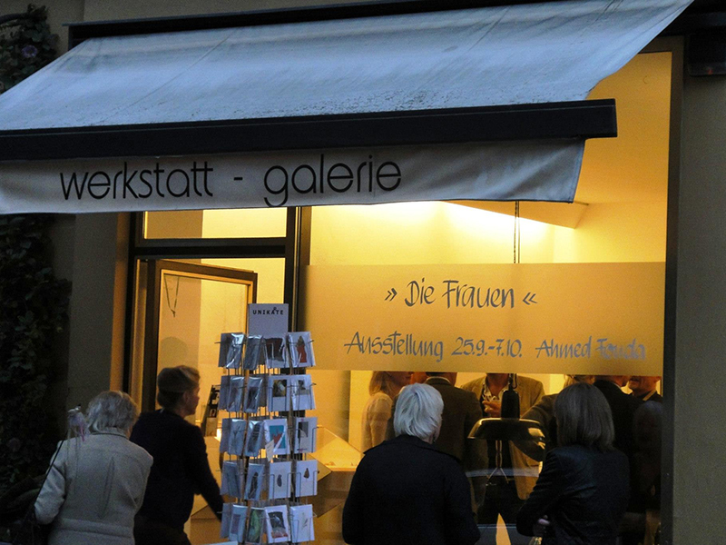 Ahmed Fouda arbeitet mit Acryl, Wasserfarben, Tusche und aktuell Linol.